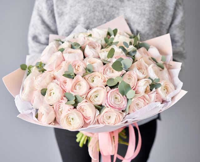 Il Ranuncolo Clone può essere paragonato alle rose inglesi da giardino per la loro magnificenza. La sua bellezza aumenta con il passare dei giorni, perché il fiore si apre sempre di più e i petali sembrano essere fatti di una seta leggera. Questo fiore dall’aspetto fragile presenta un’ottima durata tra i 7/14 giorni e il nostro consiglio è di mettere poca acqua nel vaso. <br/><br/> <b>Misure:</b> <br/> <ul> <li>XXL 50 steli di ranuncoli clone più eucalipto </li>