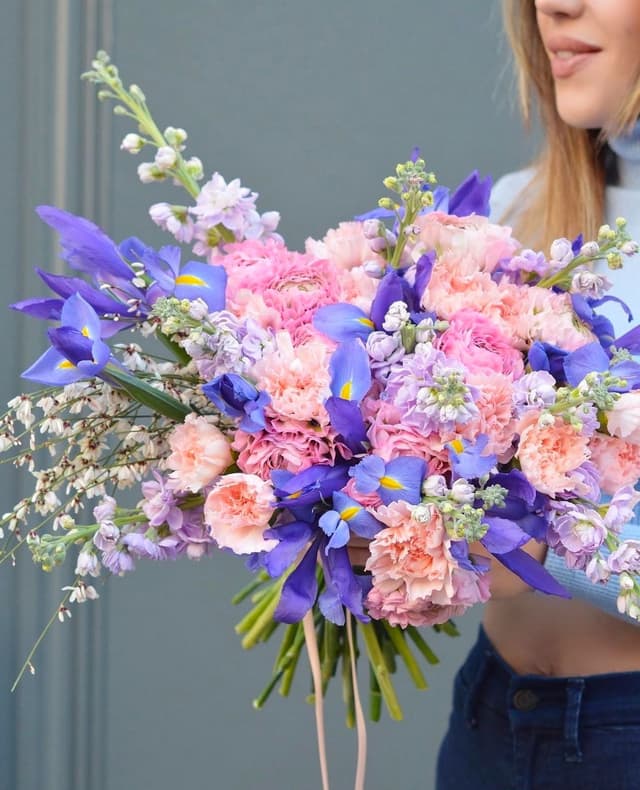 Rendi le tue giornate ancora più radiose con i nostri bouquet " Inguaribile Romantica ". Bouquet super profumato realizzato con Violaciocche, Iris, Ranuncoli, Ginestra e Garofani.